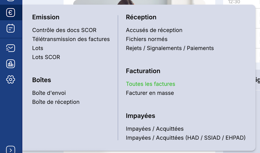 Comme votre facture est établie, allez dans le menu Facturation puis Toutes les factures.